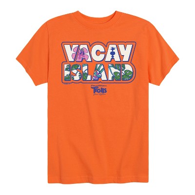 Trolls - Band Together - Welcome Vacay Island - Toddler and Youth Short Sleeve Graphic T-Shirt - Step into the whimsical world of the Trolls movie franchise with our vibrant collection of apparel. Crafted with premium materials for comfort and style, our Graphic Garments are perfect for adding a pop of personality to your wardrobe. Whether you're dancing to the beat of your own drum or spreading positivity wherever you go, our Trolls Graphic Garments are sure to brighten your day and spread smiles to everyone around you.
