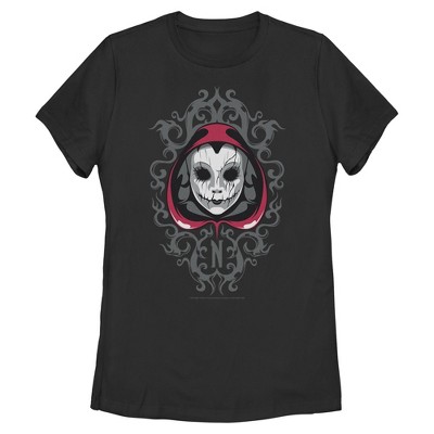Step into the shadows in style with this officially licensed Boys' Netflix Wednesday Mysterious Mask Graphic T-Shirt! This awesome design features a masked figure in a striking red hood, set against an ornate damask background, with the Nevermore's iconic "N" symbol printed below. Whether you're drawn to the drama or living for the lore, this shirt lets you wear your allegiance with undeniable flair. Don't just follow the plot, be part of it. Add this bold piece to your wardrobe before it vanishes without a trace!