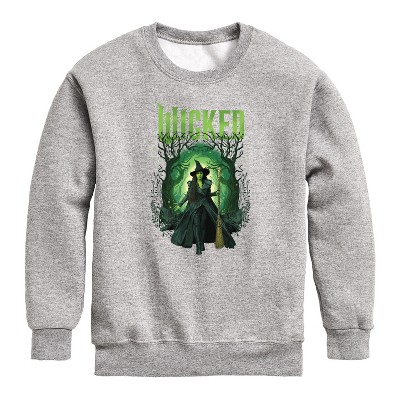 Wicked - Elphaba Forest - Youth Crew Fleece Sweatshirt - Celebrate the untold story of Oz with Wicked graphic apparel. Featuring bold designs inspired by Elphaba, Glinda, and the magic of friendship and defiance, these pieces capture the spirit of the hit Broadway musical. With iconic logos, quotes, and enchanting artwork, Wicked apparel lets every fan show their love for this spellbinding story in style.