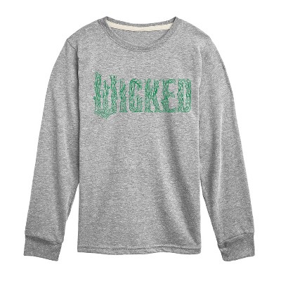 Wicked - Green To Pink Logo - Youth Long Sleeve Graphic T-Shirt - Celebrate the untold story of Oz with Wicked graphic apparel. Featuring bold designs inspired by Elphaba, Glinda, and the magic of friendship and defiance, these pieces capture the spirit of the hit Broadway musical. With iconic logos, quotes, and enchanting artwork, Wicked apparel lets every fan show their love for this spellbinding story in style.