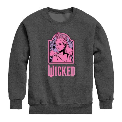 Wicked - Stained Glass Elphaba - Youth Crew Fleece Sweatshirt - Celebrate the untold story of Oz with Wicked graphic apparel. Featuring bold designs inspired by Elphaba, Glinda, and the magic of friendship and defiance, these pieces capture the spirit of the hit Broadway musical. With iconic logos, quotes, and enchanting artwork, Wicked apparel lets every fan show their love for this spellbinding story in style.