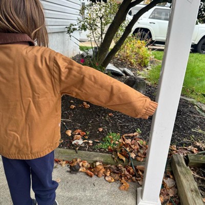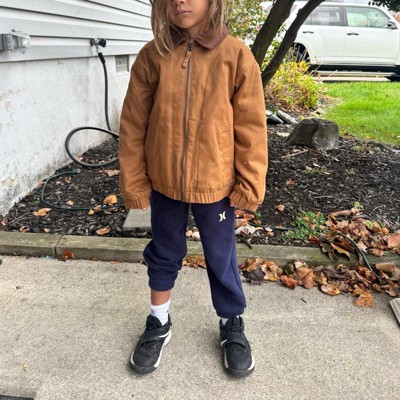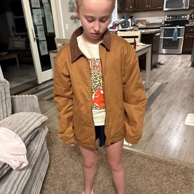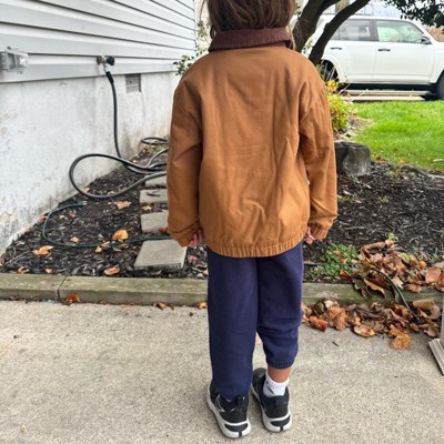 [This review was collected as part of a promotion.] This workwear jacket is so adorable for both young boys and girls! It reminds my daughter of her grandpas jacket and she loves that. My daughter is wearing an extra small size and she is five years old. I think the extra small fits her true to size and would fit the average 4-6 year old girl or boy. The material is a great quality and the jacket is nice and thick so could be worn on the very cold days.