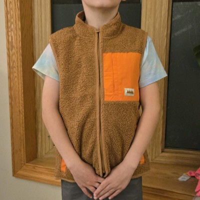 [This review was collected as part of a promotion.] My son is a tall 7 year old wearing size medium. This is his typical size. This vest runs a bit long which is nice for a long torso. He doesn’t typically wear vests, but he really likes this one. It has a Sherpa look on the outside and a fleece like feel on the inside. This vest will be great for layering in the fall and winter. We live in TX and we often have cool mornings and then the temperature warms back up. I received an incentive to write this review.