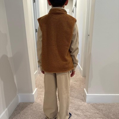 [This review was collected as part of a promotion.] We are upgrading our third graders cooler weather wardrobe so we picked up this Vest Coat from Cat & Jack (9 year old wearing size 8) and he absolutely loves his new outfit. The faux shearling is incredibly soft. He loves the fact there are pockets on the inside and the outside of the shirt. The vest does seem to run a little large if you are only wearing a t-shirt underneath. I received an incentive to write this review.