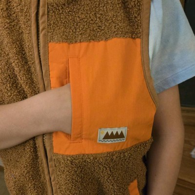 Brown and orange shearling vest