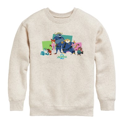 Zootopia 2 - Nick, Judy, And Friends - Youth Crew Fleece Sweatshirt - Join the hustle and bustle of Zootopia with graphic apparel featuring Judy Hopps, Nick Wilde, and fan-favorite characters in city-smart, animal-inspired styles.