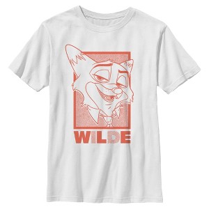 • Hop, hustle, and hiss with this new boys' t-shirt that is perfect for every occasion! Featuring an artistic, lined portrait of Nick Wilde and "Wilde" printed loud and proud in fierce orange lettering across the front.