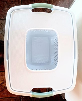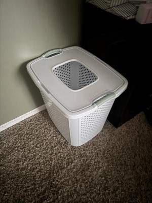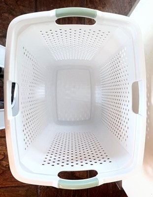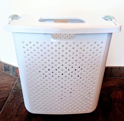 A: Hello candypuff1216 - Thank you for your interest on - BR XL Lamper with Lid White with Daydream Green Handles. The ventilated mesh design allows airflow, making it ideal for temporarily storing and sorting clothes. It includes a removable lid and sturdy handles, enabling you to cover the load and easily transport it to the laundry room. Hope this helps. - Rose