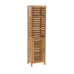 Expertly crafted from solid bamboo, this cabinet is not only eco-friendly but also durable enough to handle daily use. Its clean lines and slim design fit seamlessly into modern, coastal, or farmhouse décor, offering versatility that adapts to your home’s style. With generously sized shelves measuring 13.75" wide x 8.5" deep x 0.5" thick, this cabinet provides plenty of room for all your storage needs while maintaining a sleek footprint. Whether you need to organize bathroom essentials, store linens, or add vertical storage to a small space, the Linon Bracken Tall Cabinet blends practicality and sophistication for a clutter-free home.