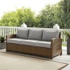 Whether you are lounging solo or entertaining a group, the Bradenton Sofa fits the bill. The sturdy steel frame is wrapped in beautiful all-weather wicker and topped with moisture-resistant cushions. With gently arched arms and deep seating, the Bradenton Sofa is made for comfort without sacrificing style. Great on its own or paired with the rest of the Bradenton collection, this sofa is a perfect addition to your outdoor retreat.