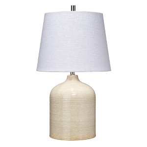 With its soft and easy palette and gently rounded lines, this lamp is the perfect piece to light up any room of the home or office. The base is handcrafted of ceramic and enhanced with gentle ribbing that adds a touch of texture, and a coordinating cylindrical metal finial and rolled edge linen shade are included.