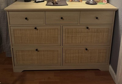 Natural Rattan Design – Our dresser drawers are made of natural rattan, which is handwoven rattan and can create Bohemian style. Coupled with the elegant lines of the tabletop, it is very modern and can be paired with various furniture styles, making it a great storage assistant.