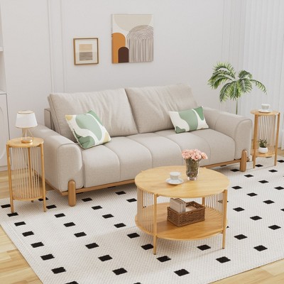 Brafabhome 360° Rotating Coffee Table with Storage, 39"-50" Length Expandable Cocktail Table, Mid-Century Modern Center Table for Living Room | Nature