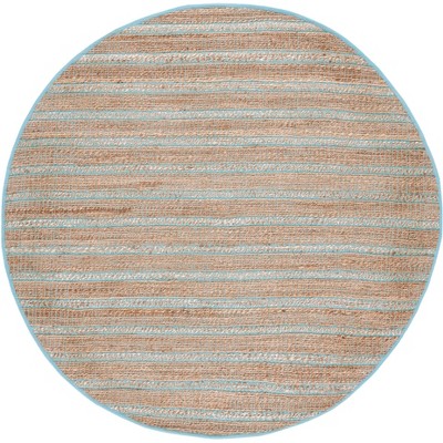 Braided BRA230 Machine Washable UV & Stain Resistant Non-Shedding Hand Woven Indoor/Outdoor Area Rug - Aqua/Green - 7' Round - Safavieh