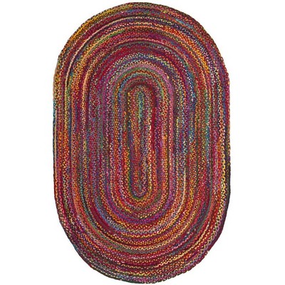 Braided BRA823 Hand Woven Indoor Area Rug - Red/Orange - 5'x8' Oval - Safavieh
