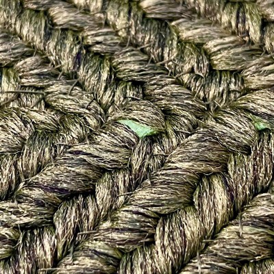 I liked the color and design of this rug. But the braids are made of fibers wrapped around bright green foam, which was unfortunately visible throughout the rug.