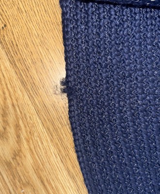 I really wanted to like this rug, but it started fraying and unraveling along the edges within the first week (see photos). I bought a braided rug expecting some level of durability, but the stitching clearly isn’t secure. Because it’s already coming apart, returning it might not even be an option. If you have pets, kids, or plan to place it in a medium-traffic area, I would not recommend this rug. The edges are especially vulnerable, and I’ve already had to trim threads and tuck in unraveling spots just to prevent further damage. Aesthetically, it’s also underwhelming. The material has a shiny, plastic-like look in person, and there’s a white synthetic thread used to hold the braiding together. In some spots, this thread is so thick and dense that it really stands out against the darker fabric—looks cheap and a bit sloppy.