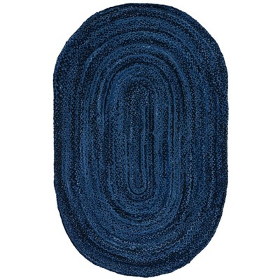 Braided BRD451 Hand Woven Area Rug - Navy/Black - 5'x8' Oval - Safavieh.