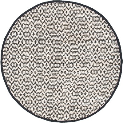 Introducing our elegantly crafted 6' x 6' round area rug, a fusion of coastal charm and timeless design, handwoven by skilled artisans from India. This exquisite piece brings a serene, naturalistic touch with its soothing beige and black tones, perfectly accenting any living space.