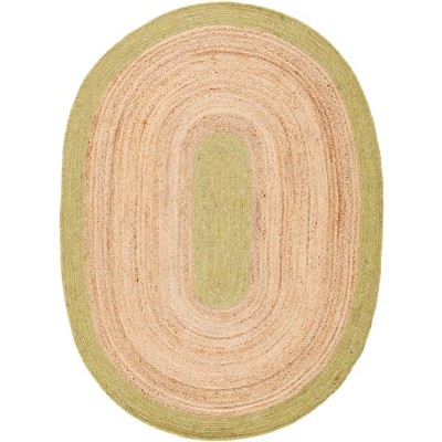 Elevate your space with the timeless charm of our hand-woven 5' x 7' oval area rug, a harmonious blend of green and ivory that exudes sophistication. The distinctive oval shape and the subtle pattern accentuate contemporary styling while conveying a sense of warmth and comfort to any room.