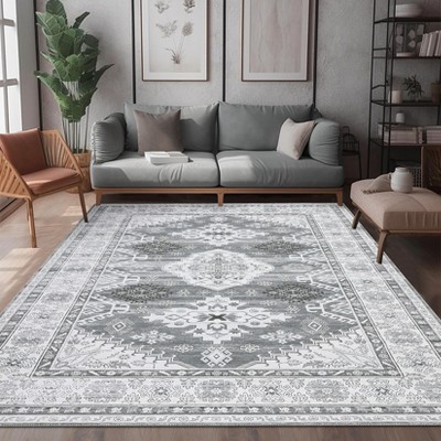 Braided Printed Machine Washable Rug with Rubber Backing for Living Room Non-Slip Dining Room Rug Foldable Contemporary Accent Rug