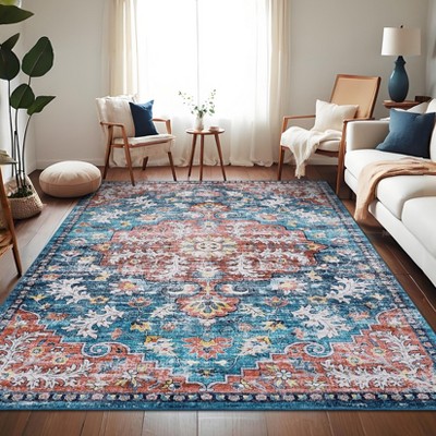 Braided Printed Machine Washable Rug with Rubber Backing for Living Room Non-Slip Dining Room Rug Foldable Contemporary Accent Rug