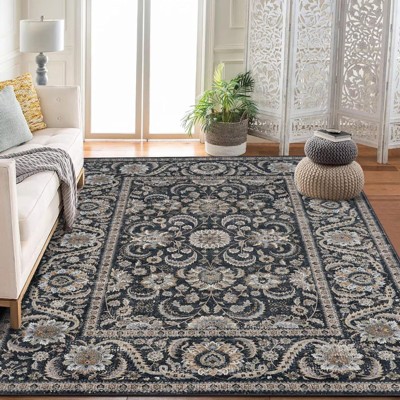 Braided Printed Pattern Rug, Soft Foldable Low Pile Non-Slip Floor Mat, Farmhouse Bordered Indoor Carpet for Living Room, Bedroom