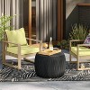 Refresh your patio, porch or backyard area with this Braided Round Outdoor Pouf from Threshold™. The round pouf features a stylish braided design for textured appeal that blends effortlessly with your decor and boasts a fade-resistant design to promote lasting outdoor use. Simply place the upholstered pouf in front of your wicker sofa to put your feet up as you unwind or as an extra seating option.