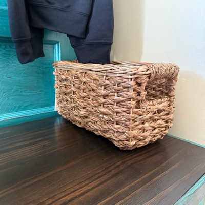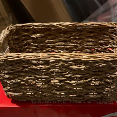 The Braided Seagrass Small Bin from Brightroom™ makes a practical yet stylish addition to your home decor. Woven from seagrass, this braided small bin in a lacquered finish brings extra visual interest and textural flair to any home space. This rectangular small bin features an open top to make it easy to stash away and remove the contents, and side cut-out handles make it easy to carry around the house.