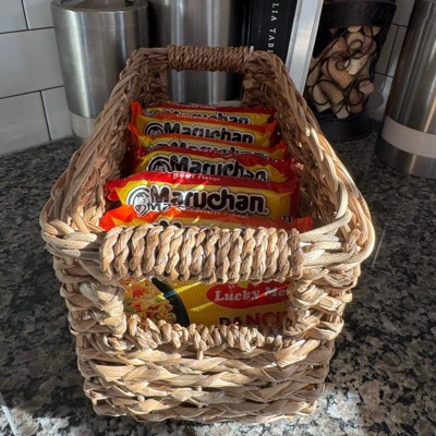 [This review was collected as part of a promotion.] This small home decor basket is a great size for small spaces. The thin profile makes it easy to stick in a corner on a counter or at the front door for a catch all. This basket has held up nicely for our front entry to throw keys and extra charging cords inside to keep track of. The price point on this bin is a little higher than I like to spend, but the quality is great worth the price. I received an incentive to write this review.