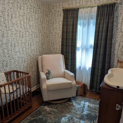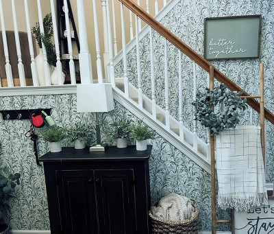 A: The wallpaper features an allover branch pattern for a fresh greenery vibe.