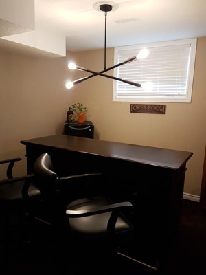 Easy to install. Looks amazing above our bar. Now we are going to get the accent one for above the poker table