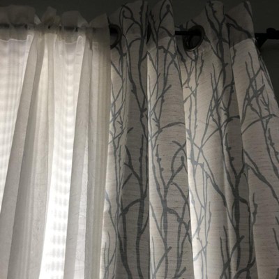 Set of 2 96"x54" Branches Linen Blend Grommet Top Window Curtain Panel Dark Gray - Exclusive Home: Light Filtering, Botanical Design