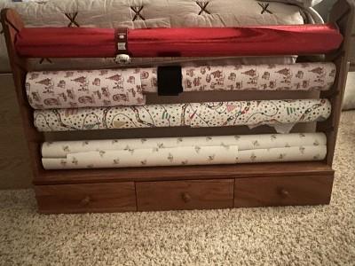[This review was collected as part of a promotion.] I purchased this wrapping paper holder online. This stand holds four rolls of wrapping paper to make your wrapping station more organized and simple. It has three small.drawers for organizing things like ribbons, scissors, tape, etc. I really like the idea of this holder and the quality of it was nice. The wood is pretty heavy and substantial. It looks nice in my home and displays nicely with my decor. My issue with the holder is that the rods only hold small to medium rolls of wrapping paper. Most of the rolls of wrapping paper I have were too large to fit on the rods. The rolls were purchased at Target so I would thing they would be compatible, but unfortunately they weren't. This was not an inexpensive item. It was actually rather pricey, but it does seem well made, just like everything else in this line. I will just have to use my smaller rolls of wrapping paper with it.