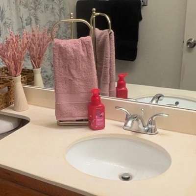 I bought this for my stepdaughter who lives in an apartment. She wanted a towel holder that didn't require a wall mount. This did the trick. Perfectly sized for her bathroom counter and it looks great. She loves the brass finish as it matches all of the Hearth and Hand Magnolia line.