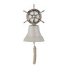 - A ship wheel background frame adds character to this bell decor together with a braided rope attached to its clapper
