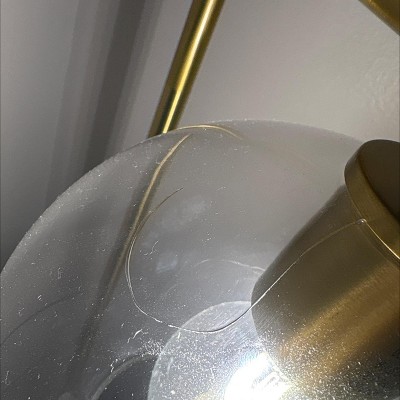 A: Hi ZK - Thank you for reaching out. We appreciate your interest in Brass Floor Lamp with Glass Shade. Spec of the shade is clear glass; however, depending on the desired aesthetic, you can also use cased glass (like dark green sandwiched with white glass), opalescent glass, or other tinted glass options that complement the brass finish. A replacement or alternative for a lamp shade could be a new fabric shade made from different materials like silk, linen, paper, or even a unique option like stained glass, depending on the desired aesthetic, while still maintaining the functionality of diffusing light from the bulb; you can also consider using a decorative piece of fabric, wallpaper, or even a repurposed item like an old map to cover the existing shade frame for a custom look. I hope this helps - Emma