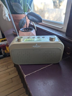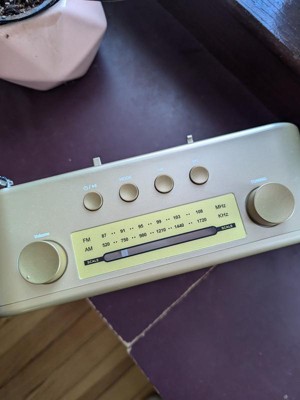 - Portable AM/FM radio in gold hue