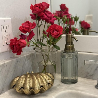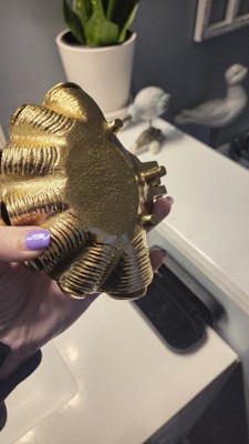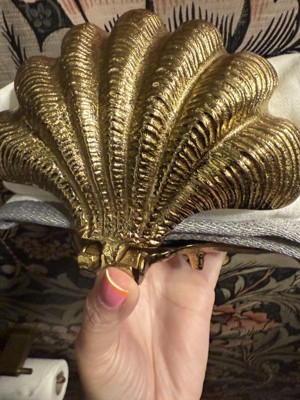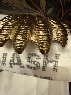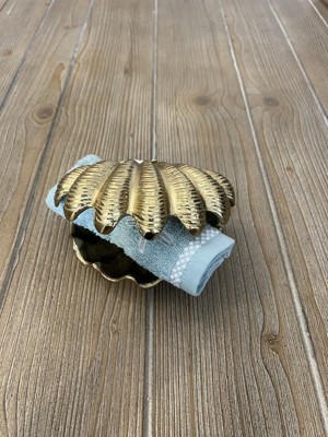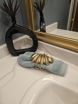 Give your bathroom decor an elegant update with the Brass Shell Hand Towel Holder with Hinge from Threshold™. Designed in the shape of a shell, this towel holder opens up to hold a hand towel, making it an amazing addition to your bath space. This hand towel holder is made of brass-finish metal to add a vintage vibe to your bathroom decor.