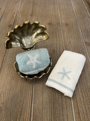 Elevate your bathroom decor with this gorgeous seashell hand towel holder.