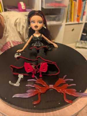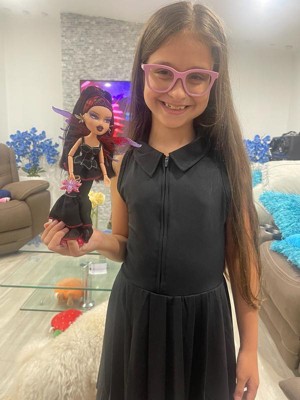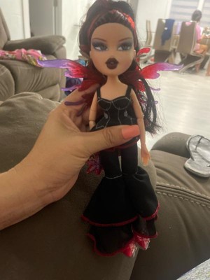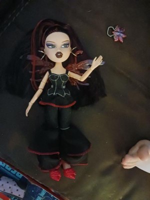 [This review was collected as part of a promotion.] My daughter has recently gotten back into dolls and she also loves Gothic things. For a while there she was really into creepy dolls. So this bratz doll was a real hit. The hair is really intricate and it feels soft. The wings are really cool - they come off and you can use them as a ring. It's fully jointed and actually a bit flexible. The shoes are a part of the feet so you don't have to worry about them falling off. The way the doll is kind of looking to the side made me giggle. Definitely get it. You won't regret it