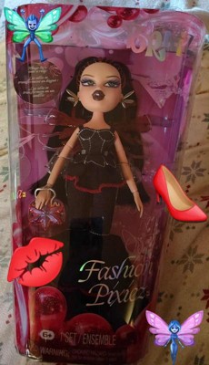 [This review was collected as part of a promotion.] Bratz Lina Fashion Pixiez doll is absolutely beautiful! The doll is packaged and presented very well in the box. My daughters both got so excited when she arrived they have been fighting over who will get to keep her in their room. Lina comes with 1 top and cute little bell bottom pants. A pair of fancy red shoes, a pair of wings with a clip that turn into a ring. She is wearing silver butterfly earrings and comes with an adorable purse. She would make a great gift for any collector of dolls. Thank you for this opportunity to review this quality made beautiful doll!