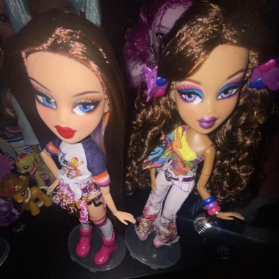 - INCLUDES: 2 Bratz® special edition collector Roxxi™ and Nevra™ Fashion Dolls, 2 removable outfits, 2 hats, 2 protest signs, 1 heart-shaped fan, 1 megaphone, 1 water bottle, 1 champagne bottle, 2 champagne glasses, 3 bracelets, 2 hair clips, 2 doll stands and a certificate of authenticity.