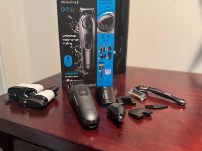 [This review was collected as part of a promotion.] I received this item complementary in exchange for my honest review. This trimmer comes with 2 adjustable blade covers, a eyebrow cover, detailing cover and a body trim cover, as well as a nose and ear trimmer adapter, a trimmer brush, a charger and a Gillette hand razor. I like how you can adjust the adjustable attachments to .5 increments without having to look through a whole bunch of different covers. The body, eyebrow and detail covers can come in very handy for the tricker parts to get. The nose and ear trimmer work well. And of course the Gillette hand razor works well also as it's all I've used for years. I like that the trimmer has a 4 year warranty with it. The one thing that I can say is a con for this device is that it doesn't have a usbc charger, but a proprietary one that would make it impossible to get incase you're in a hurry and lost yours or it broke. I think it would be a great idea for the company to change that