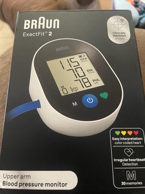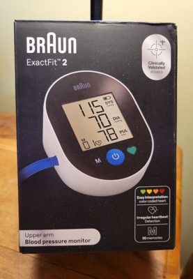 [This review was collected as part of a promotion.] The Braun ExactFit 2 Blood Pressure Monitor is an excellent device for at-home health monitoring. It’s incredibly easy to use, with a large, clear display and simple one-button operation. The readings are accurate and consistent, and I love the color-coded indicators that help interpret results quickly. The universal cuff fits comfortably, and the ability to store up to 30 readings makes tracking progress simple. It even detects irregular heartbeats! This monitor gives me peace of mind and helps me stay on top of my health with ease. Highly recommend for anyone needing a reliable BP monitor.