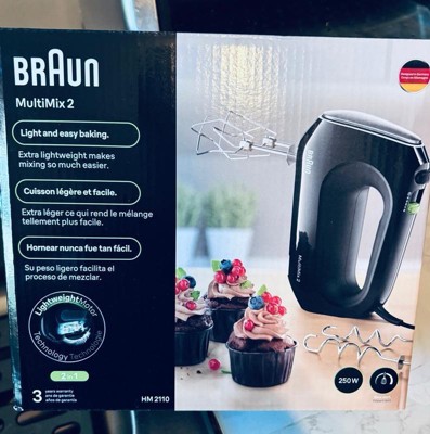 [This review was collected as part of a promotion.] The Braun MultiMix 2 Hand Mixer HM 2110 is a great, easy-to-use mixer. It’s powerful, mixes smoothly, and feels comfortable in hand. The speed settings work well, and it’s easy to clean. It doesn’t come with a storage case, but overall, it’s a reliable and stylish kitchen tool.