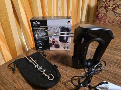 [This review was collected as part of a promotion.] This electric mixer from Braun is great! Has a nice sleek design(love the black and stainless steel combo). It comes with 2 different mixing attachments, the normal beaters and then dough hooks. When done you can just throw the attachments in the dishwasher and then store them in the cool storage bag included. Definitely recommend!