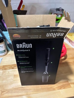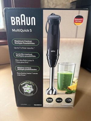 Multiply the possibilities with the MultiQuick 5 Vario Hand Blender. This ergonomic, 21-speed immersion blender puts the precision of a durable 500-watt motor in the palm of your hand so you can chop, blend and purée even the toughest foods with ease. The innovative PowerBell VPlus design features ultrahard stainless steel blades plus 6 inner ribs to create more food-to-blade contact and up to 7x finer results. * VarioSpeed Technology allows you to seamlessly switch speeds as you blend, and the unique bell shape and blade alignment draw food upward to all but eliminate splashing. That means maximum control, minimal mess, and smooth, consistent performance every time. Plus, this versatile stick blender goes even further with the EasyClick Plus Accessory System, which is compatible with Braun’s full range of interchangeable MultiQuick attachments (sold separately). The MultiQuick 5 Vario Hand Blender is versatility, multiplied—bringing you more power, more speeds and more ease so you can create more of the flavors you love. * Compared to Braun MQ500
