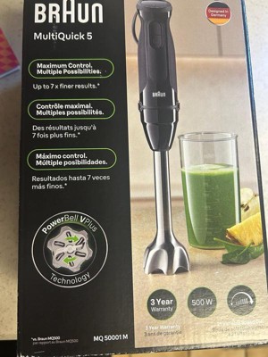 - WORLD’S FIRST POWERBELL VPLUS TECHNOLOGY: Get up to 7x finer results * . The unique bell-shaped blending shaft features ultrahard stainless steel blades and 6 inner ribs to create more food-to-blade contact for smoother blending results. * Compared to Braun MQ500