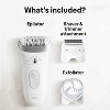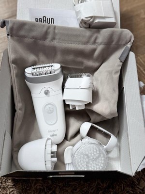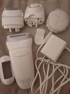 - INCLUDES: SE7 Epilator, Shaver Head, Trimmer comb, Exfoliator, Skin Contact Cap, and Cleaning Brush